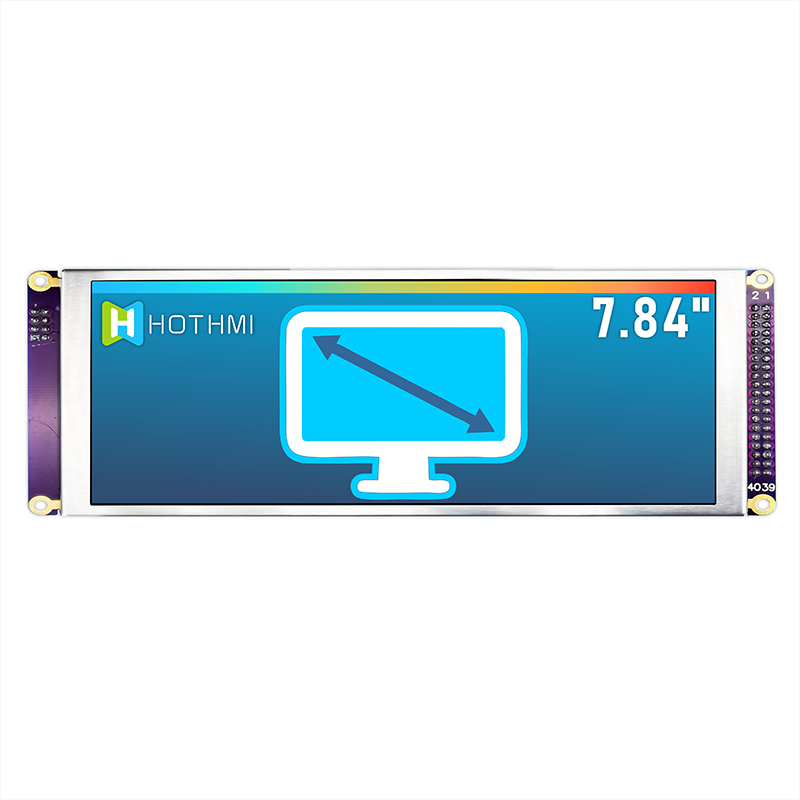 Screen Type: 7.84-inch Bar Style IPS TFT LCD Display Resolution: 1280x400 pixels LCD Controller Board: Included Luminance: 450cd/m2 Interface: MCU+SPI TFT Module Operating Temperature Range: -20°C to 70°C Built-in Graphics Processor Single Chipset: 8051 Supports STM32 series chipsets