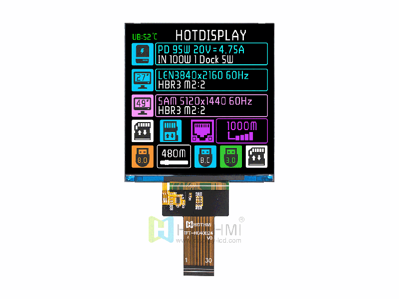 4.0-inch square display 480x480 IPS TFT/ST7701S controller/RGB interface/STM32/RK TFT-H040A1PVIST3G40 TFT Display 480x480 84.0x84.0x3.06 4.0 4.0 71.86x70.18 IPS 350cd/m2 FPC-40 pin RGB Anti-static ESD 8KV -20~70℃ +3.3V ST7701S