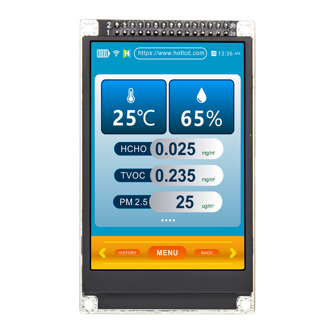 為了延長(zhǎng)屏幕使用壽命,該模組特別設(shè)計(jì)了屏幕保護(hù)機(jī)制,建議用戶使用黑色或動(dòng)態(tài)圖像進(jìn)行定期刷新,避免長(zhǎng)時(shí)間靜態(tài)顯示造成圖像殘留。接口設(shè)計(jì)靈活,支持SPI/IIC切換、觸摸中斷信號(hào)等功能,方便用戶根據(jù)實(shí)際需求進(jìn)行配置。此外,其結(jié)構(gòu)尺寸精準(zhǔn),公差嚴(yán)格控制在±0.3mm以內(nèi),便于集成安裝,適用于工業(yè)控制、醫(yī)療設(shè)備、消費(fèi)電子等多個(gè)領(lǐng)域。3.5英寸TFT模塊HTM-H035A31-MCU-A01憑借出色的顯示效果、穩(wěn)定的性能和廣泛的兼容性,是提升設(shè)備顯示品質(zhì)的理想選擇。