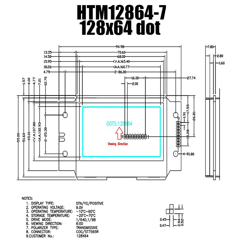 類型:帶板COG液晶模組