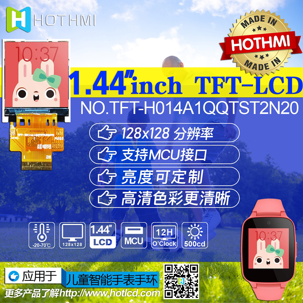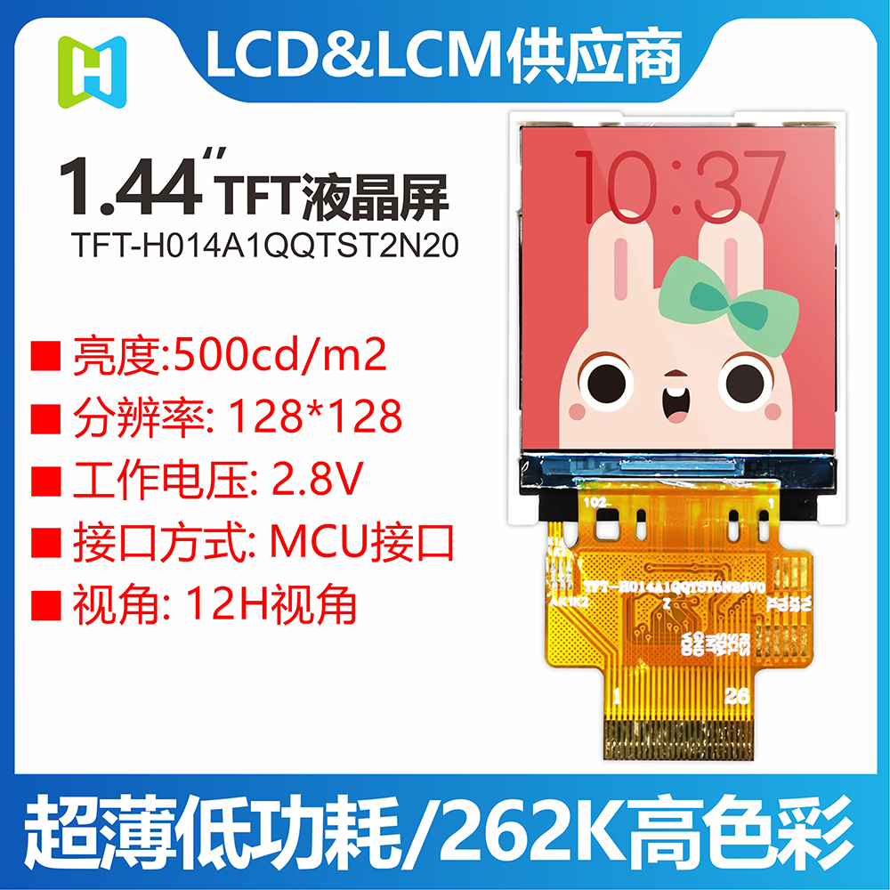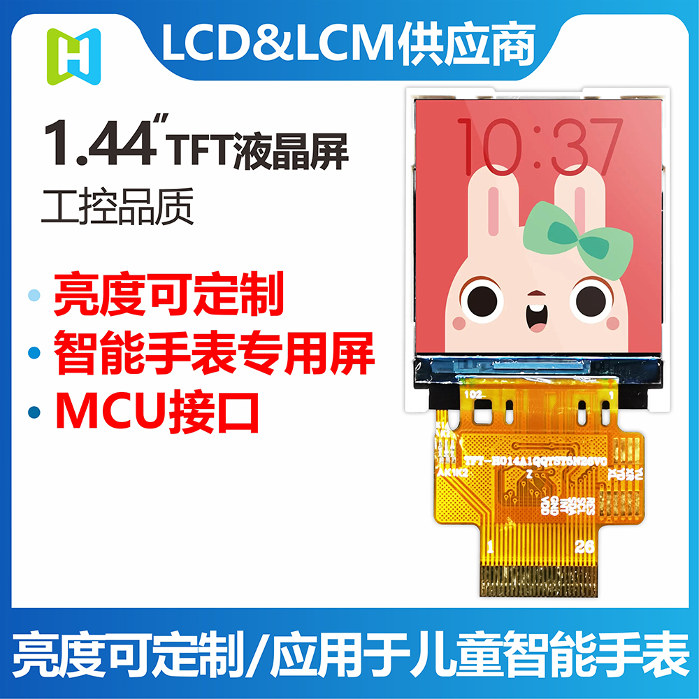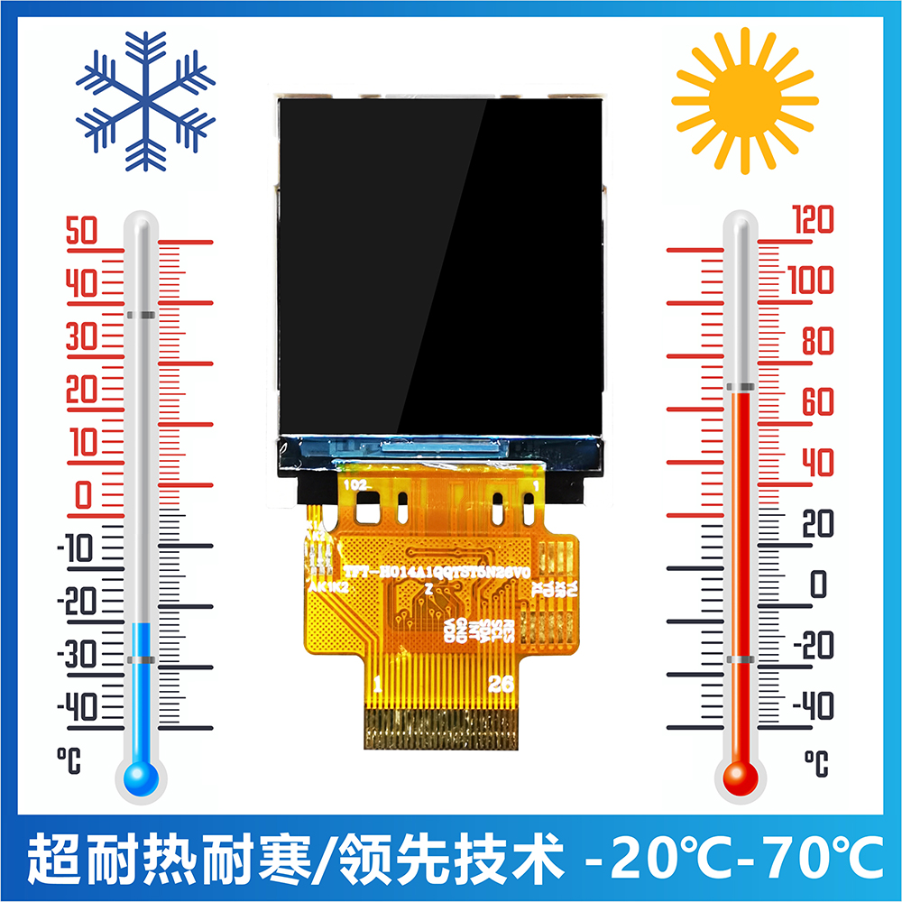 產(chǎn)品描述 TFT-H014A1QQTST5N26 是一款 1.44 英寸全彩 TFT LCD 顯示模塊,分辨率為 128x128 像素,縱橫比為 1:1。 該TFT模塊采用ST7735S驅(qū)動IC,支持MCU接口。 采用IPS面板的TFT模組具有廣視角優(yōu)勢(左80度/右80度/上80度/下80度),對比度典型值800:1,該模組亮度高達500尼特( 典型值)。 模塊工作溫度范圍-20℃~+70℃,儲存溫度范圍-30℃~+80℃