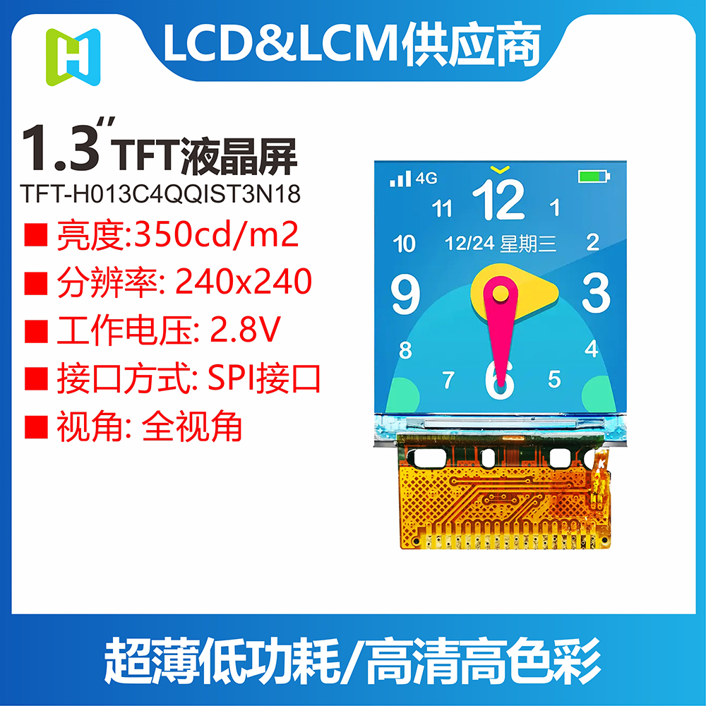 TFT-H013C4QQIST3N18是一款1.3英寸全彩TFT液晶顯示模組,分辨率為80x160像素,寬高比為1:2。 TFT模塊采用ST7789H2驅(qū)動IC,支持SPI接口。 采用IPS面板的TFT模組具有廣視角優(yōu)勢(左80度/右80度/上80度/下80度),典型對比度為800:1,模組亮度高達(dá)400尼特( 典型值)。 模塊工作溫度范圍-20℃~+70℃,儲存溫度范圍-30℃~+80℃。