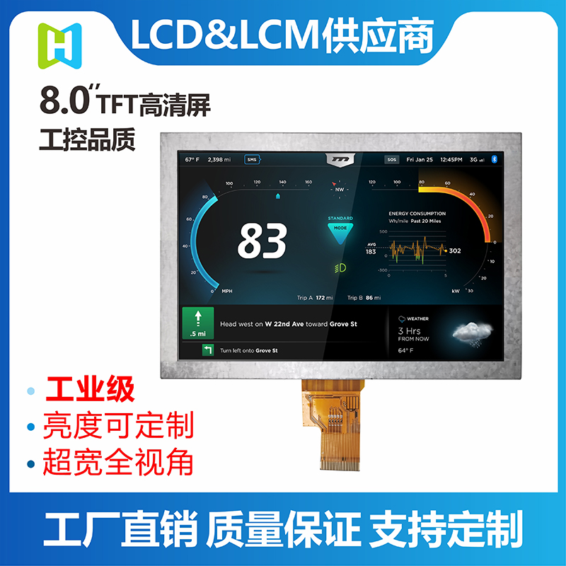 8寸TFT高清/1024*768寬視角/高亮8寸/LVDS-4L接口/TFT-H080A2XGTHX3N40_V0