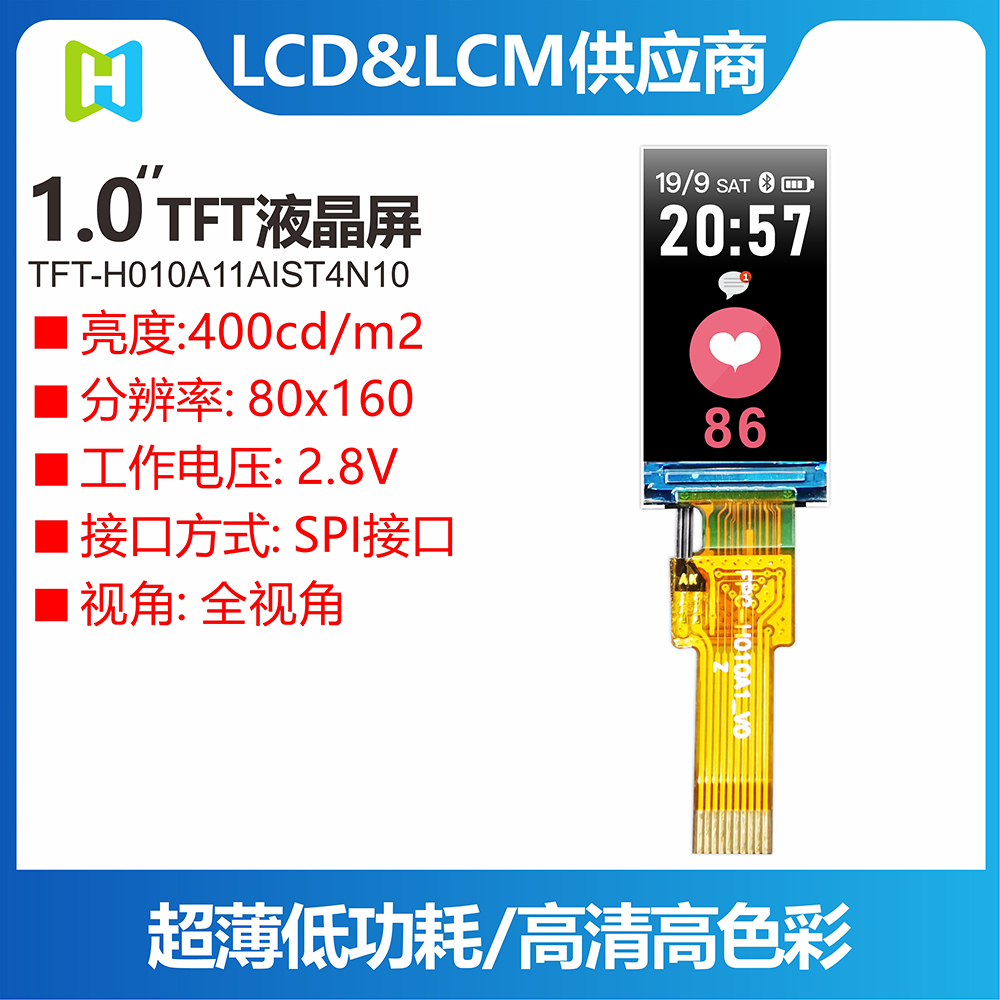 產(chǎn)品描述 TFT-H010A11AIST4N10是一款1.0英寸全彩TFT液晶顯示模組,分辨率為80x160像素,寬高比為1:2。 TFT模塊采用ST7735S驅(qū)動IC,支持SPI接口。 采用IPS面板的TFT模組具有廣視角優(yōu)勢(左80度/右80度/上80度/下80度),典型對比度為800:1,模組亮度高達400尼特( 典型值)。 模塊工作溫度范圍-20℃~+70℃,儲存溫度范圍-30℃~+80℃。