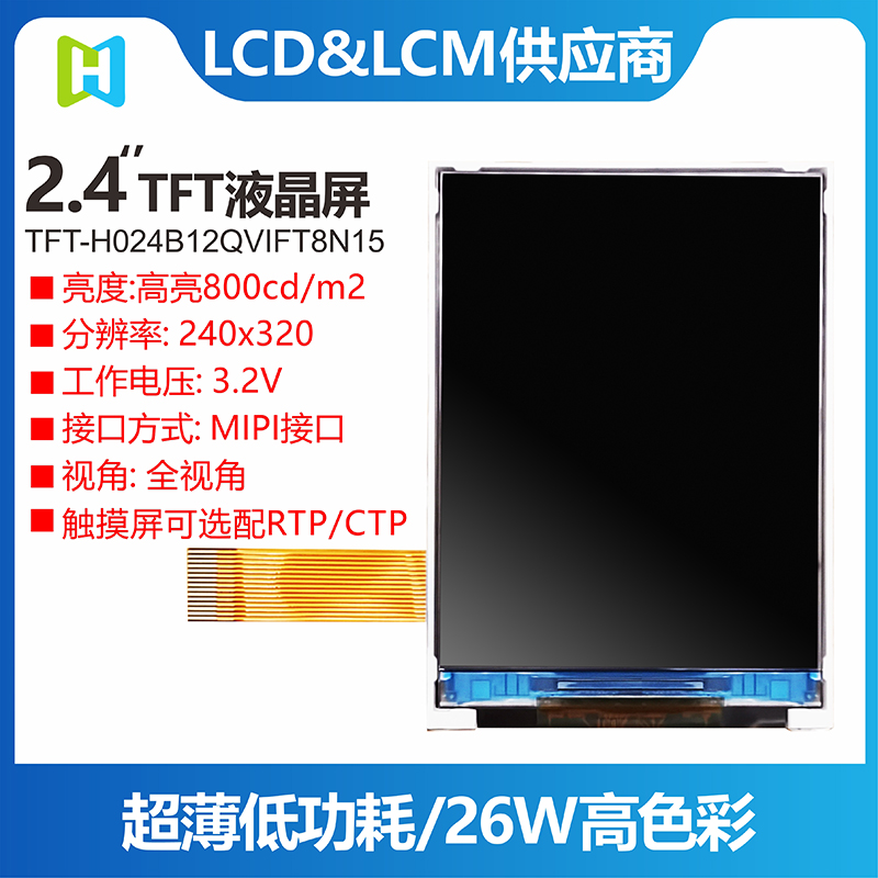 TFT-H024B12QVIFT8N15是HOTLCD研發(fā)團(tuán)隊(duì)精心設(shè)計(jì)的2.4英寸TFT彩色液晶屏,240*320分辨率,高畫質(zhì),廣視角,65K/262K真彩,內(nèi)置JD9852控制器,支持MIPI接口,無(wú)需外圍電路,15PIN插件FPC可接主板(可選連接器),單電源DC 3.2V供電。 該TFT模組可配備觸摸屏,所有材料均符合RoHS環(huán)保要求標(biāo)準(zhǔn)。 廣泛應(yīng)用于各種儀表、智能設(shè)備、分析儀器、手持儀表、行車記錄儀等:8051、PIC、AVR、ARDUINO、ARM、樹莓派等。