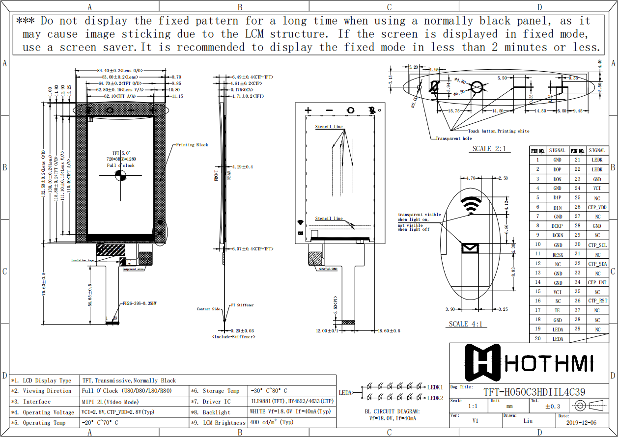 5.0寸TFT彩屏|高清720*1280分辨率|全視角IPS工藝|MIPI接口|TFT-H050C3HDIIL4C39