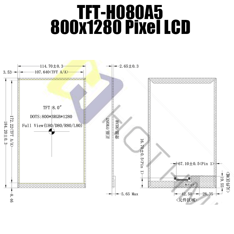 8.0寸TFT彩屏|高清800*1280分辨率|全視角IPS工藝|MIPI/LVDS接口|TFT-H080A5HDIFT5N40