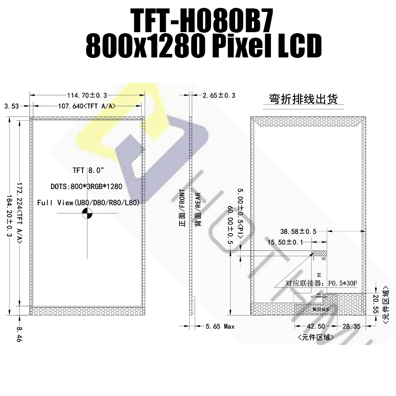 8.0寸TFT彩屏|高清800*1280分辨率|全視角IPS工藝|MIPI 接口|TFT-H080B7HDINV6N31