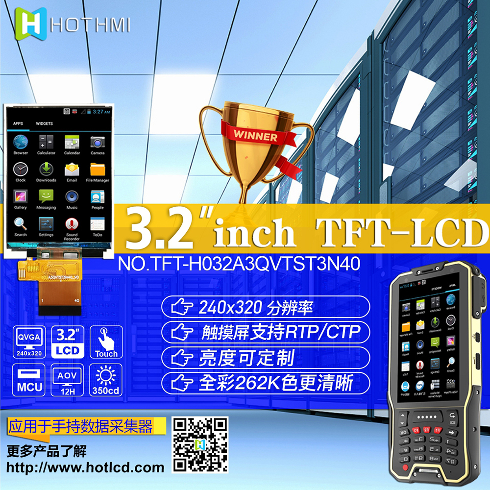 TFT-H032A3QVTST3N40是一款工業(yè)級豎屏顯示的 TFT LCD液晶屏,分辨率為240x320像素。使用7789V驅(qū)動IC,可支持MCU 8/16 位兼容 SPI接口。液晶屏typical 亮度為350 nits,視角為全視角方向;供電電壓(VCI)為2.8V~3.3V,typical 值為2.8V。工作溫度為-20℃~+70℃,儲存溫度為-30℃~+80℃。產(chǎn)品使用于各項小型智能設(shè)備,家電,監(jiān)控器等。