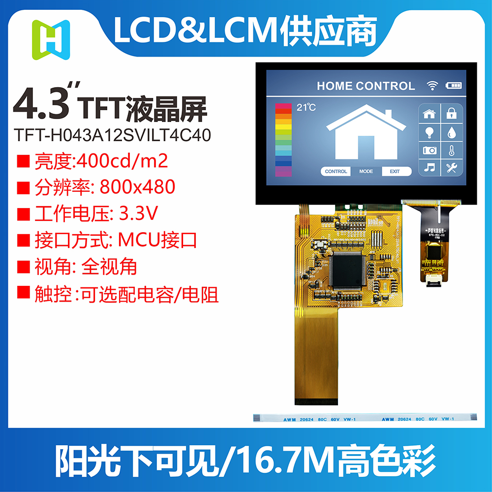 TFT-H043A12SVILT4C40 4.3寸TFT-LCD顯示器顯示全方位視角,此型號(hào)外觀尺寸為 105.42*67.07mm, 有效尺寸為95.040*53.856mm,4.3寸A12的工作溫度為-20℃~+70℃而儲(chǔ)存溫度則為-30℃~+80℃。此款4.3寸顯示屏帶有電容式觸控屏幕。產(chǎn)品主要用于工業(yè)級(jí)設(shè)備上包含了工業(yè)儀器儀表設(shè)備醫(yī)療儀器、GPS導(dǎo)航、咖啡機(jī)、洗衣機(jī)等白色家電、能源系統(tǒng)、充電樁、POS系統(tǒng)、自動(dòng)販賣(mài)機(jī)、停車(chē)場(chǎng)收費(fèi)機(jī)等.