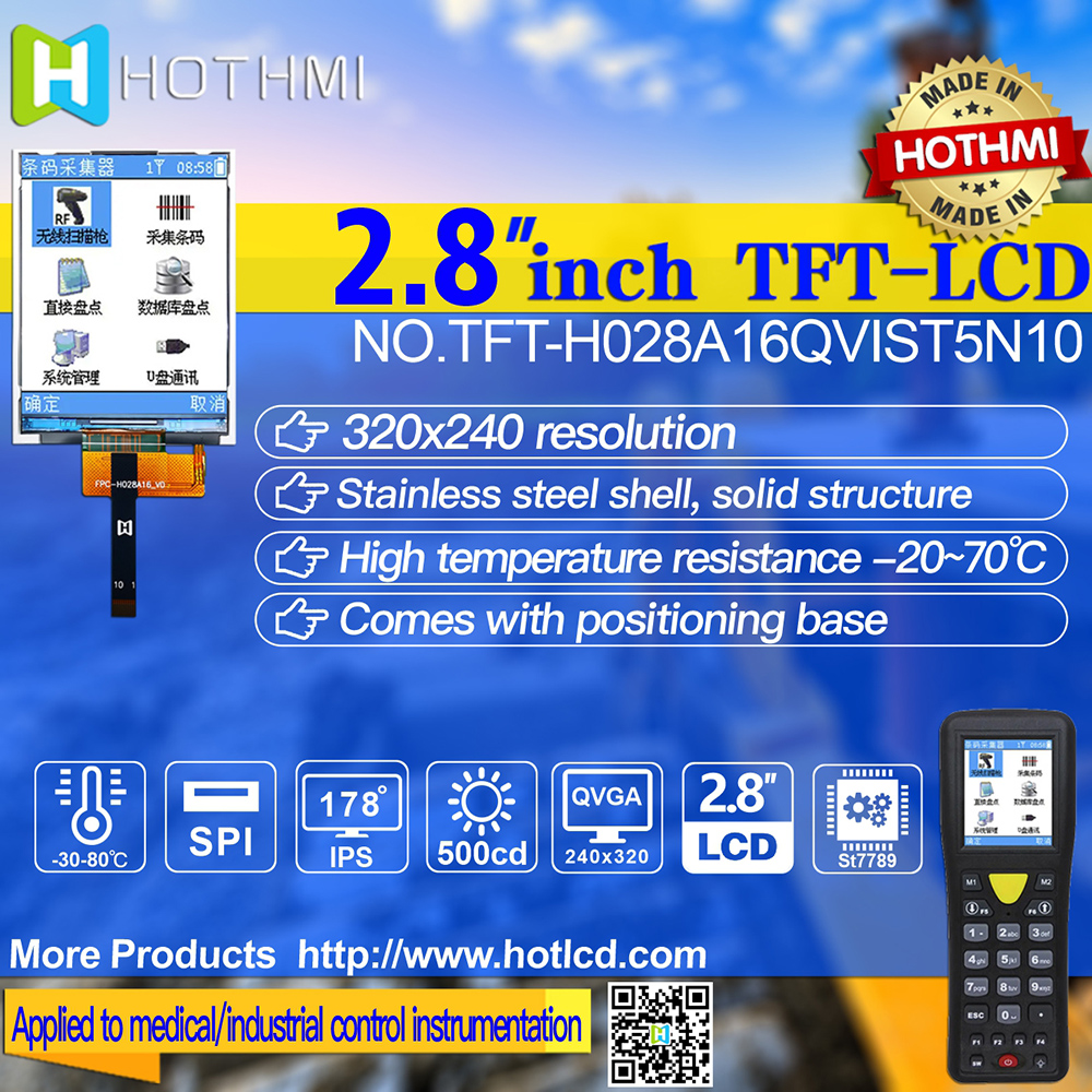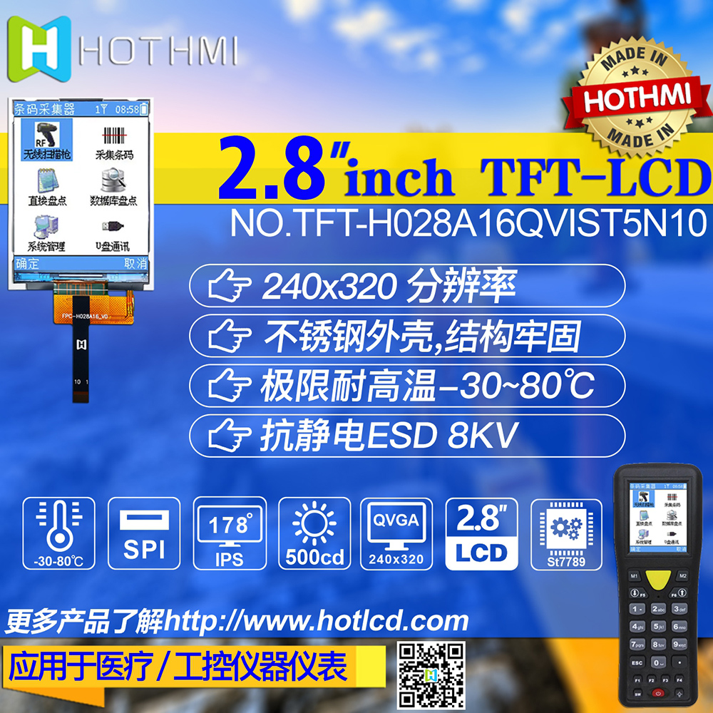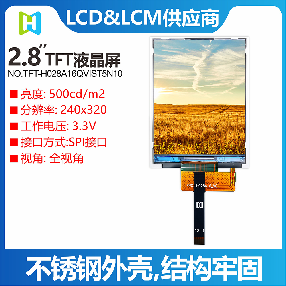 產(chǎn)品描述 TFT-H028A16QVIST5N10是一款2.8英寸全彩TFT液晶顯示模組,分辨率為240x320像素,寬高比為3:4。 TFT模塊采用ST7789V驅(qū)動IC,支持MCU接口。 采用IPS面板的TFT模組具有廣視角優(yōu)勢(左80度/右80度/上80度/下80度),典型對比度為800:1,模組亮度高達500尼特( 典型值)。 模塊工作溫度范圍-30℃~+80℃,儲存溫度范圍-30℃~+80℃。