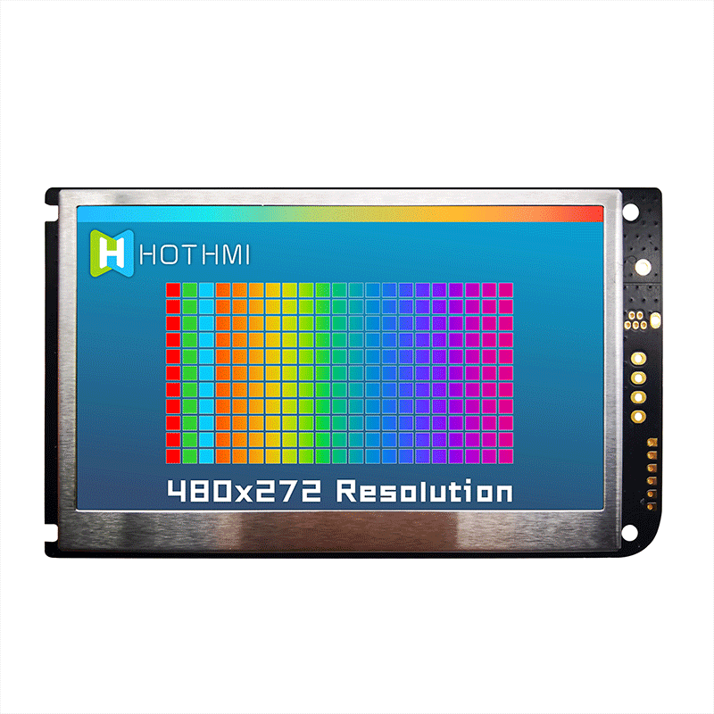 HTM-H043A2-A5-UART 是一款 4.3 英寸 IPS TFT LCD 顯示模塊,分辨率為 480x272 像素。 它帶有一個 LCD 控制板,亮度為 500cd/m2。 該模塊使用 UART (TTL) 接口進行通信,工作溫度范圍為 -20°C 至 70°C。
