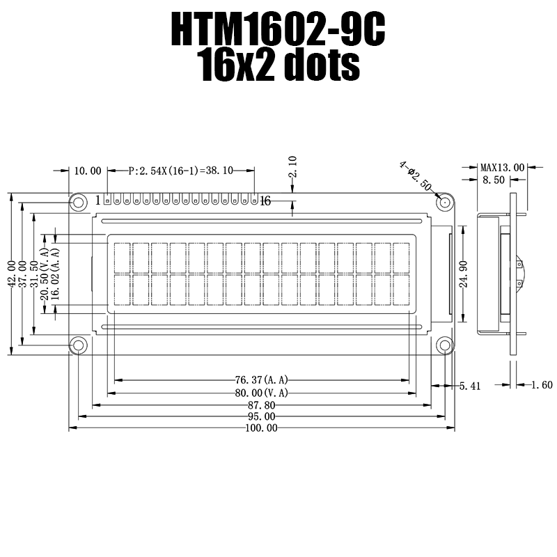 顯示像素:16x2