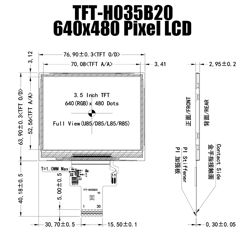 引入我們先進(jìn)的產(chǎn)品——3.5英寸IPS 640x480廣溫TFT顯示面板——TFT-H035B20VGIST4N30!