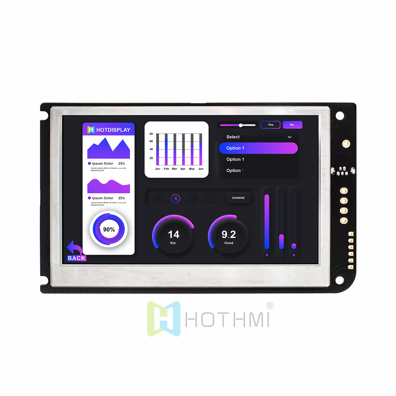 4.3英寸彩色TFT顯示模組/4.3英寸UART智能串口屏/480x272分辨率/IPS全視角TFT帶板模組 HTM-H043A10-A5-UART是一款4.3寸彩色串口顯示屏。它是一款I(lǐng)PS全視角的顯示屏,不管您從哪個(gè)方向觀看,都會(huì)呈現(xiàn)出良好的效果。標(biāo)準(zhǔn)亮度 LED 背光為 500 尼特,亮度適中。這款透射式 LCD 需要 5V 電壓電源,UART接口,HOTDISPLAY UART 顯示由兩部分組成:串口屏硬件和附帶的串口屏軟件: