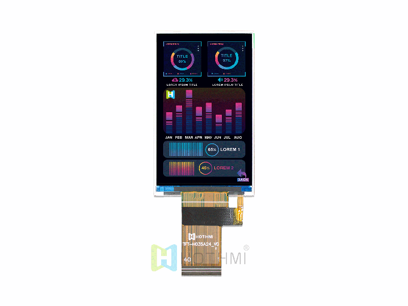 | 3.5寸IPS TFT 液晶模塊顯示/480x800點(diǎn)陣高分辨率/ST7701S/彩屏模組/陽光下可讀/TFT-H035A24WVIST8N40 | TFT豎屏 | 480x800 |