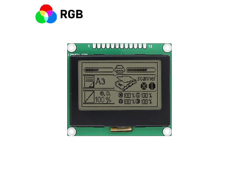 | 2.0 英寸128x64 圖形LCD液晶顯示模塊|FSTN+全透偏光片|紅綠藍(lán)背光 HTM12864T01A-35S-A3P | 圖形液晶模組 | 128x64 |