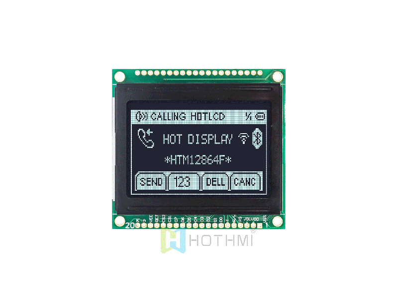 | 2.0英寸圖形點陣模塊/128x64分辨率/黑底白字/KS108或者AIP31108控制芯片/SPI HTM12864F-41W-A5P | 圖形液晶模組 | 128x64 |